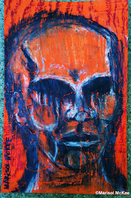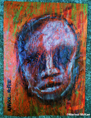 Medium: Gesso, tempera, oil sticks, and collage on journal page.