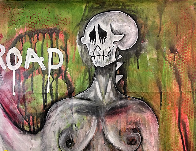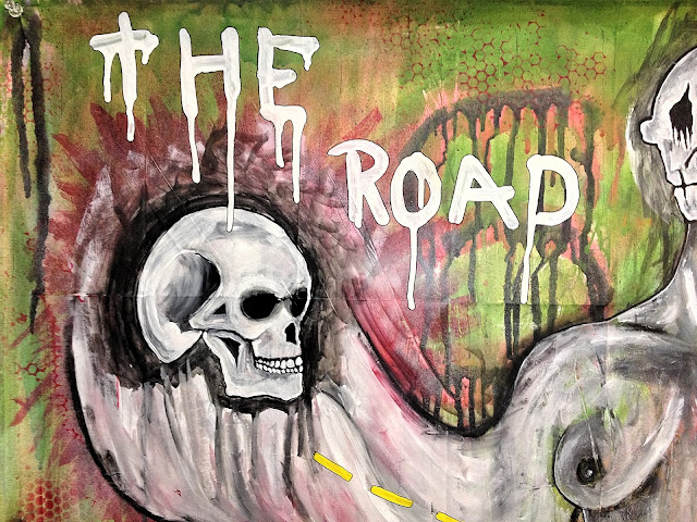 Here is number 18 in my series "The Road To Salvation." Size is 25 x 29 inches or 64 cm x 74 cm. Mediums used are gesso, acrylic paint, chalk, india ink, colored pencils, and spray paint on a West Virginia road map. Sealed with a matte finish. Signed on the front and back. Ships rolled in a tube. To see more detailed views please scroll down.