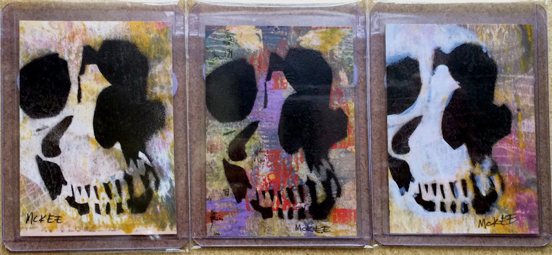 3 Skulls Triptych. Each measure 2.5/3.5 inches. Mixed medium on thick paper. |